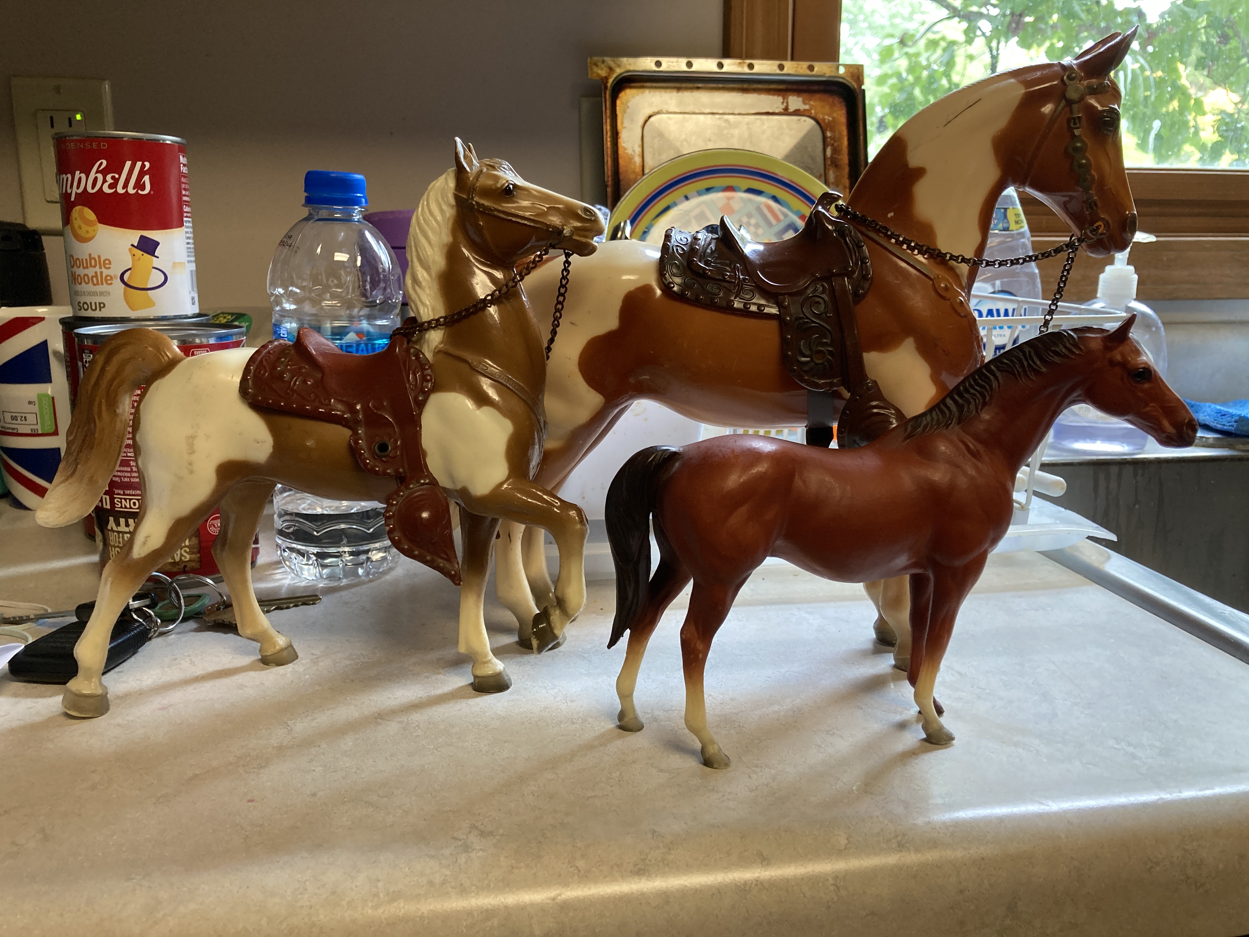 Adding a copy of Breyer's promo shot was more difficult that I thought, thanks to the newish notion that everything should save as a webp file instead of JPG, and Blogger's non-support for webp format photos. But I persevered!! I like all the colors, although of course I'm a long-time sucker for a nice palomino.